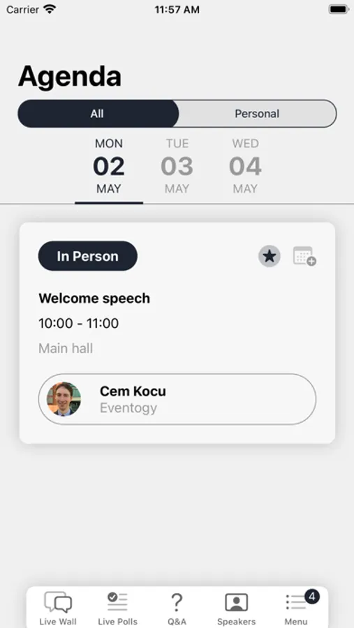 The ShepWedd app is a feature rich companion tool for attendees utilising Eventogy's registration platform. The app offers a host of interactive features, from Live Polls to Surveys, interactive messaging tools to personalised scheduling.