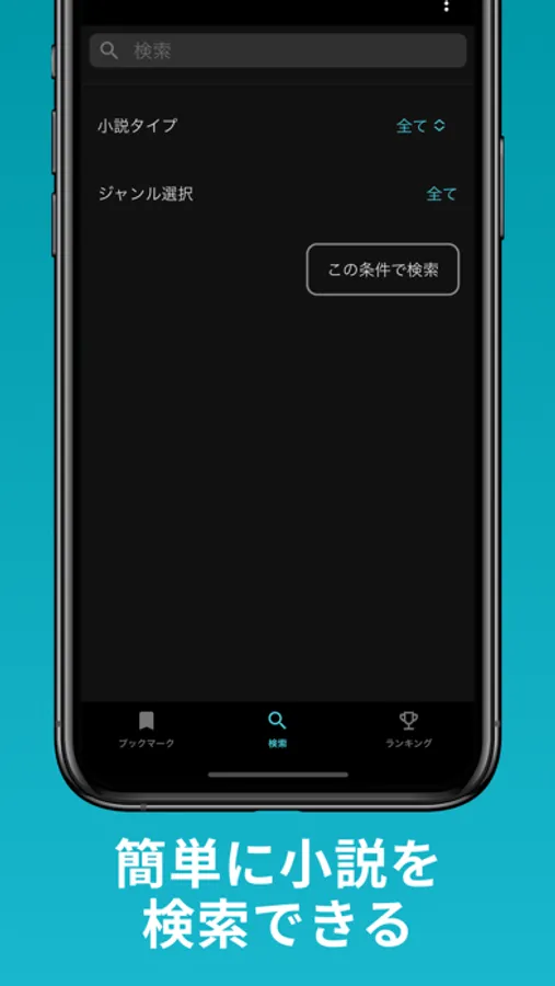 ・検索はキーワード、ジャンル、小説のタイプを指定することができます