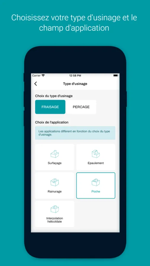 Notre ToolFinder vous permet de trouver le meilleur environnement de production ainsi que les meilleurs paramètres de coupe en fonction de votre sélection.