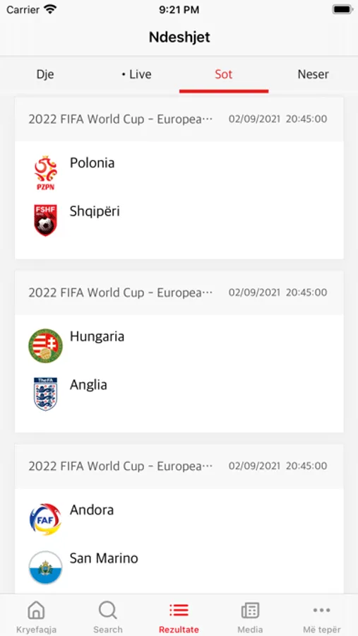 Ne kete aplikacion mund te shikoni kalendarin e ndeshjeve te secilit kampionat, duke e shfletuar ne seksionin Me teper, ose duke kerkuar per ta. Gjithashtu ju mund te shikoni edhe ndeshjet sipas diteve.