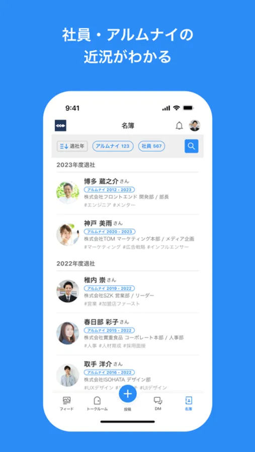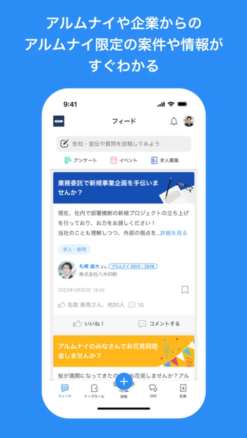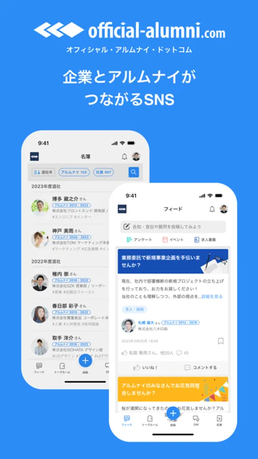 日本で初めて企業とアルムナイの関係構築に特化したクローズドなSNSです。