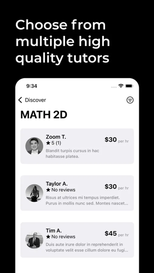 3. Search for a tutor that fits your needs and filter by price, rating, and even professor