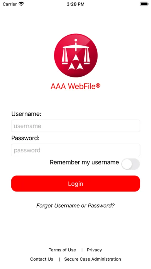 The WebFile mobile app provides parties with access to their American Arbitration Association (AAA) and International Centre for Dispute Resolution (ICDR) pending cases on their mobile devices. Parties log in to the app using their WebFile username and password.