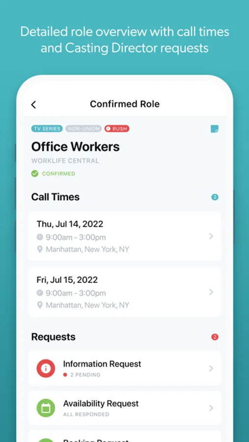 Submit directly for Background roles, accept and view upcoming bookings and manage your calendar.