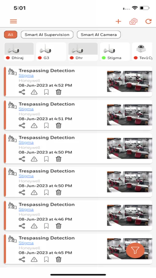 Smart AI Supervision is a smart device, capable of performing video analytics, raising alerts in real time, and delivering these alerts to the user in an intelligent manner on the Impact by Honeywell App. It consists of an integrated camera – processor set up which performs video analytics on edge. This product requires a power supply and Wi-Fi to operate. This unified mobile app is used to configure the Smart AI Supervision as per the user requirements.