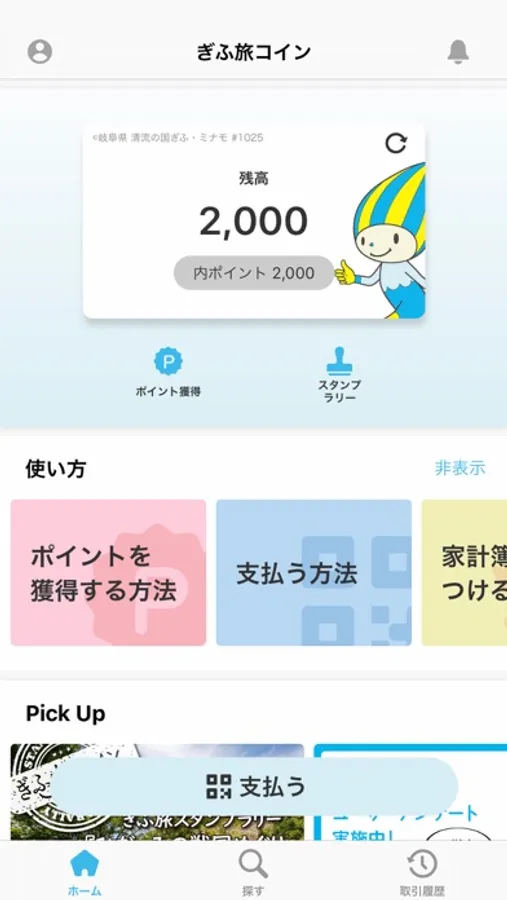 ・岐阜県内の「ぎふ旅コイン」登録店舗で利用できる地域限定ポイントで、1ポイント1円でご利用いただけます。