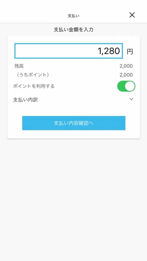 ・アプリを開いて、”支払う”よりカメラを起動します。お店が指示したQRコードを読み取り、利用金額を入力し、店員さんに画面を見せてワンタップ!これで支払完了です。