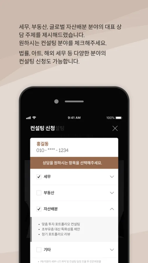 자산관리 전반 종합 컨설팅을 제공하고 있습니다.