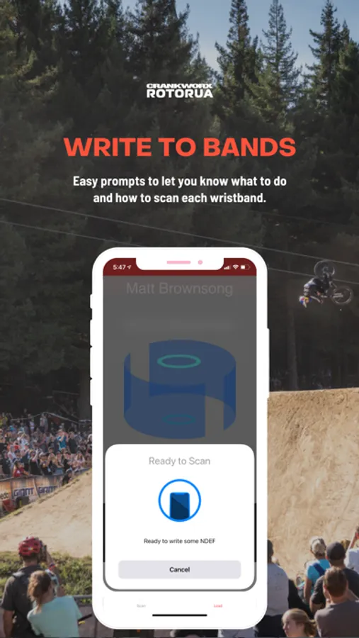 This scanning app allows members of the Crankworx World Tour to allocate passes and bands to accredited users, for select NFC wristbands.