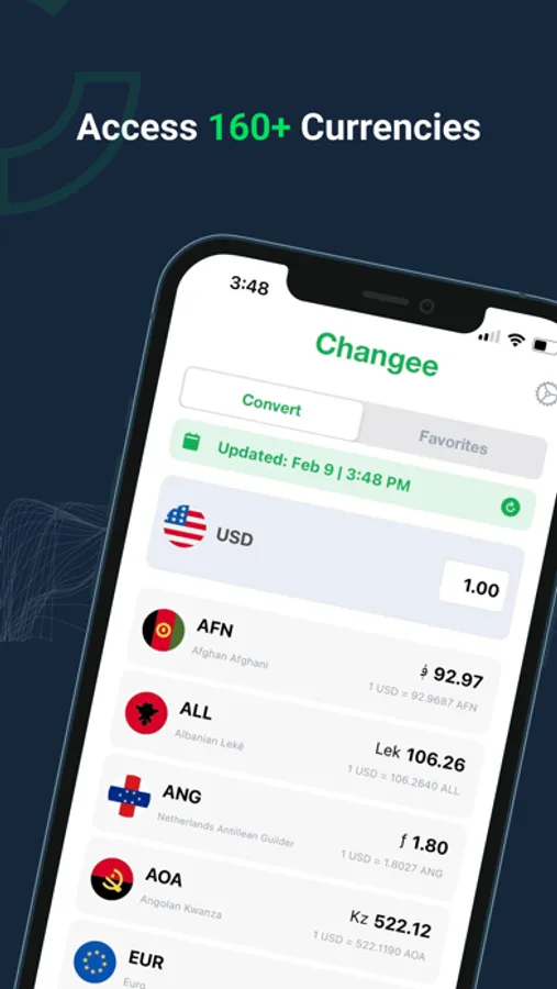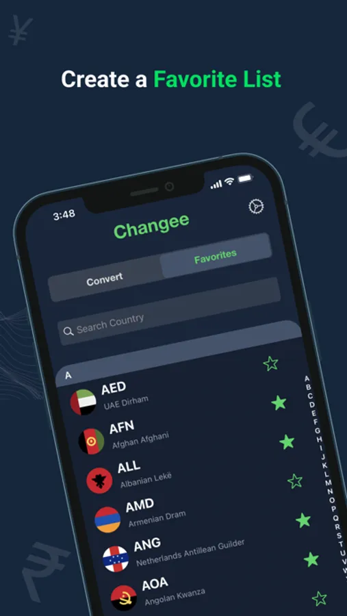 Want to keep an eye on multiple currency exchange rates? Just swipe left on any currency and add it to the favorites list.