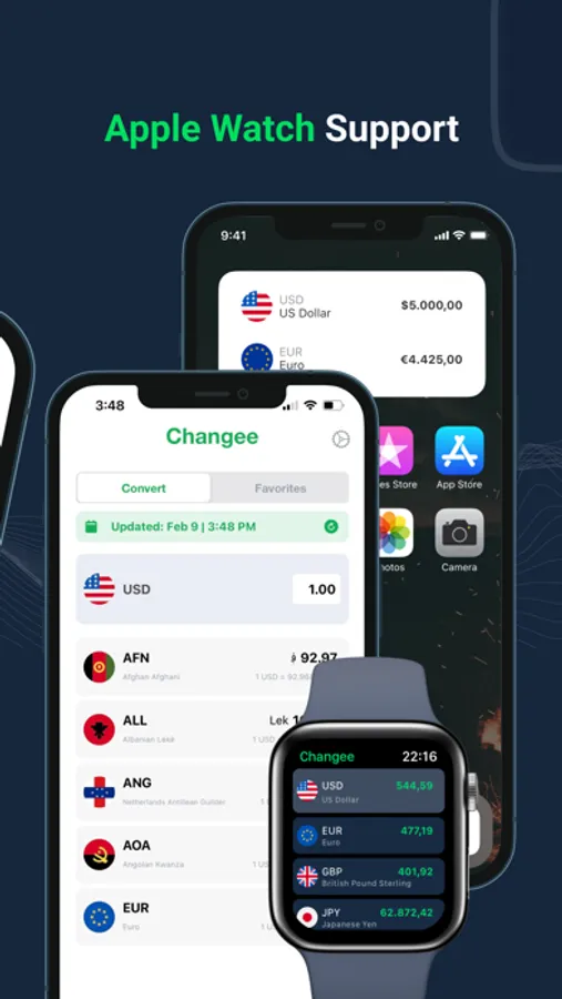 Changee is an easy-to-use currency converter that supports more than 160 currencies, offers real-time foreign currency exchange rates, and is an offline converter to make sure you always have the correct information on the go. Create a list of favorite currencies you want to keep an eye on and access them easily. Changee is the only currency exchange app that supports Apple Watch.