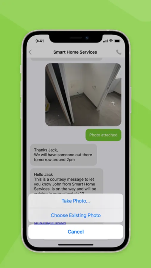 Instant-message your service provider anytime. Ask questions, send photos, view quotes and invoices, and get smart booking updates, for an easy, refreshing customer experience.