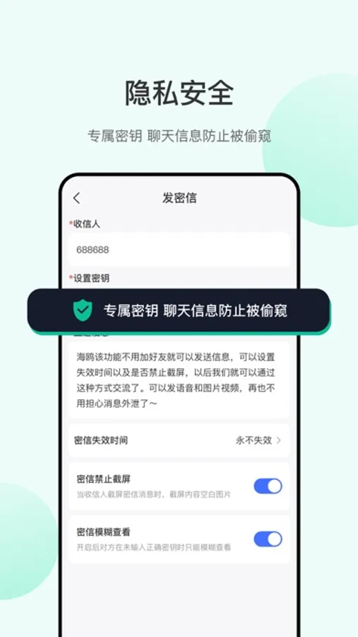 【专属密钥】私密信息专属密钥,聊天信息防止被偷窥;