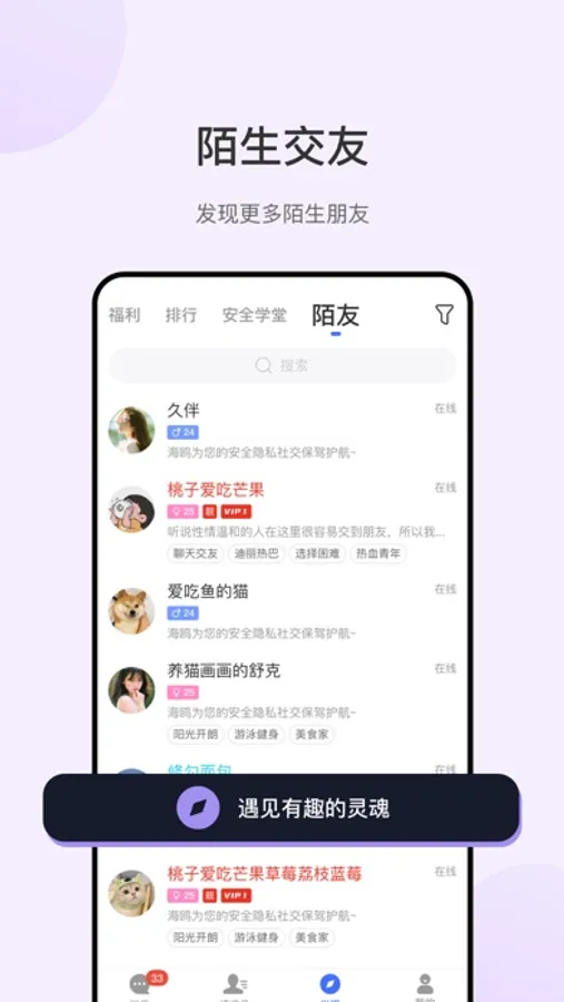 【陌生交友】发现更多兴趣相投的陌生朋友;