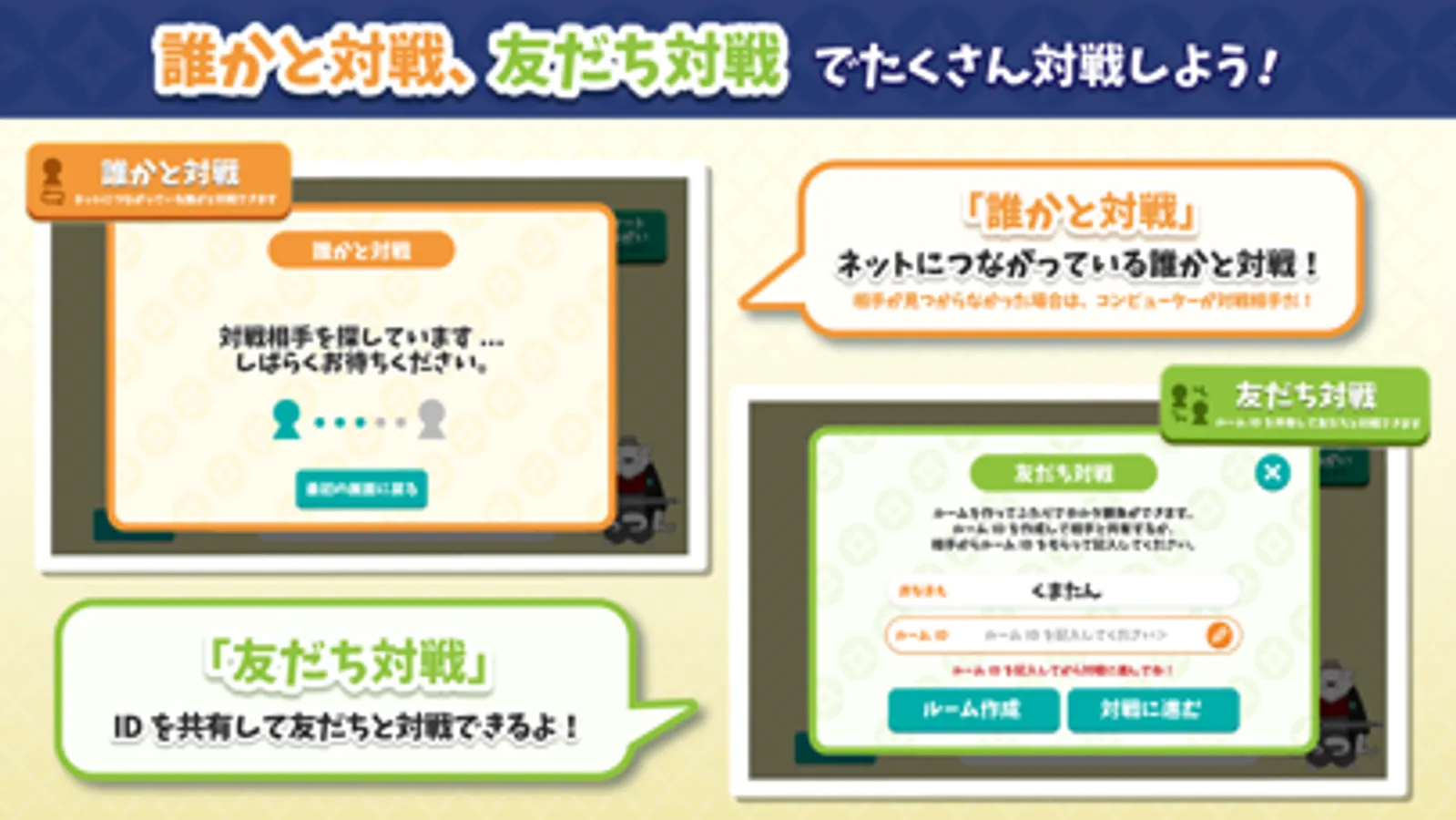◆「友だち対戦」では、ルームIDを共有して友だちと対戦できます。