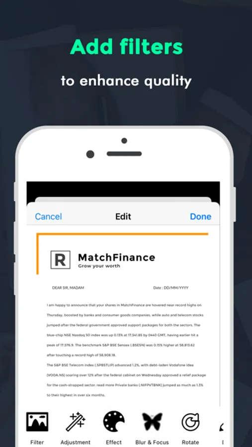 Camera Scanner lets you scan and create PDF files on your iPhone. Scan a document with your device camera or scan one from your gallery. This app works offline and requires no internet connection. It saves your PDF file history and the list of recently scanned documents. Along with scanning, features like cropping and filters improve the visibility of your documents.