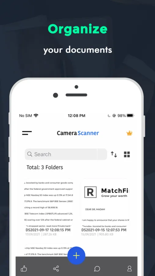 - Simply install the Camera Scanner app and tap on the + icon at the bottom of the screen to start scanning.