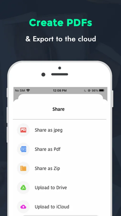 - Let's you save to gallery or share as PDF, JPG, or ZIP.