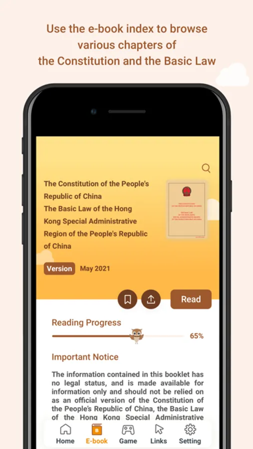 This mobile app contains electronic versions of the Constitution and the Basic Law with an index of the chapters of the Constitution and the Basic Law, as well as the “highlight” and “bookmark” functions to enhance your reading experience.