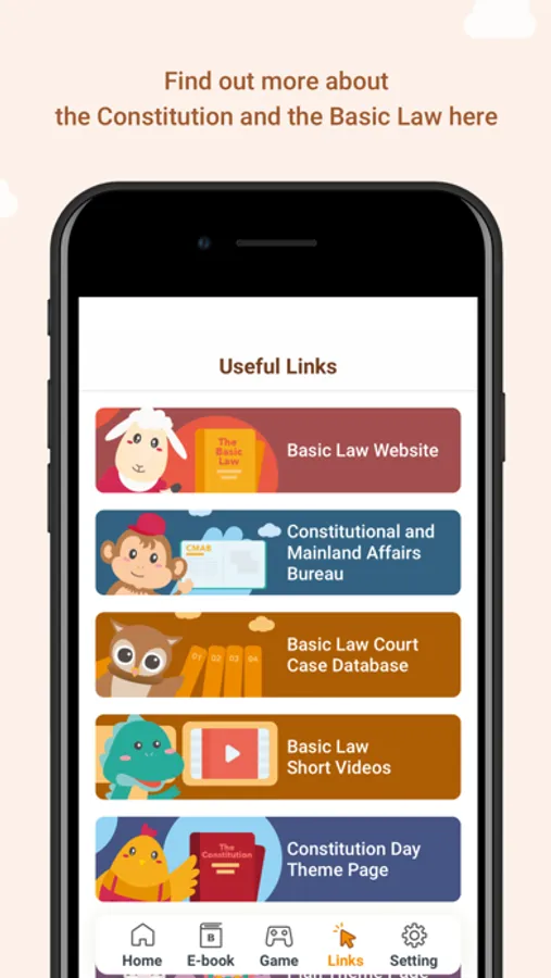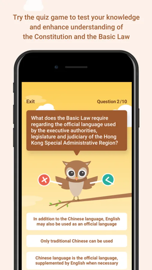 In addition, the app carries a quiz game to help strengthen your knowledge of the Constitution and the Basic Law. It also contains relevant information of the Constitution and the Basic Law such as videos and court case database of the Basic Law.