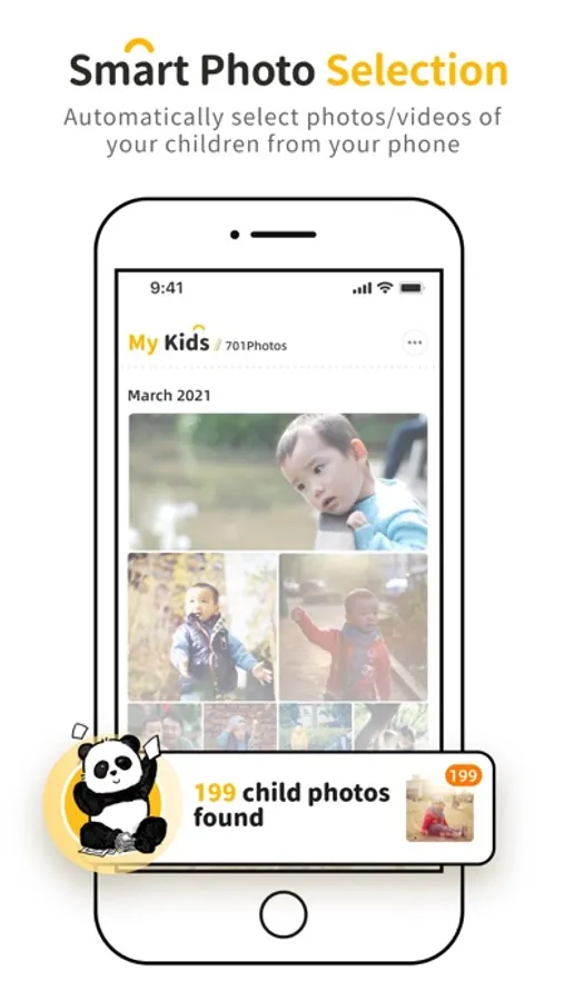 # Smart: No need for you to work hard, the app automatically finds your child's photos;