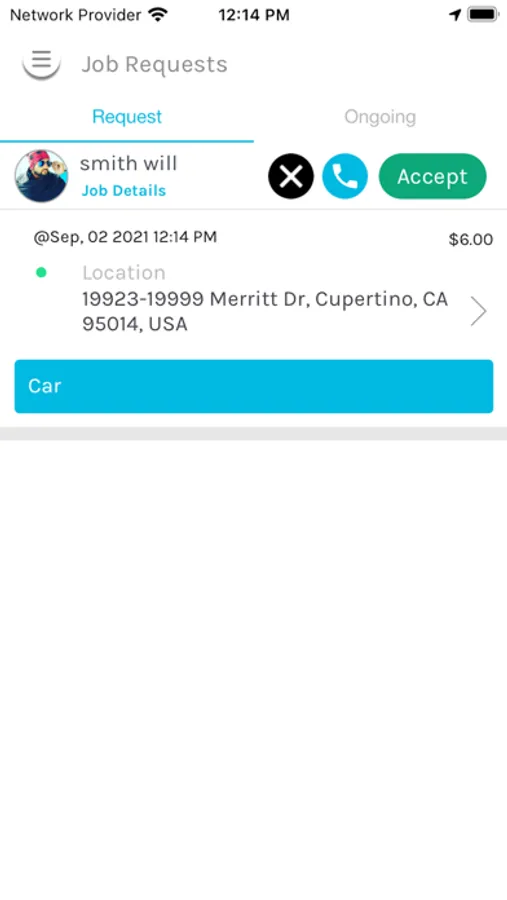 Accept Request: The app then helps the driver to Accept/Reject parking booking and earn.