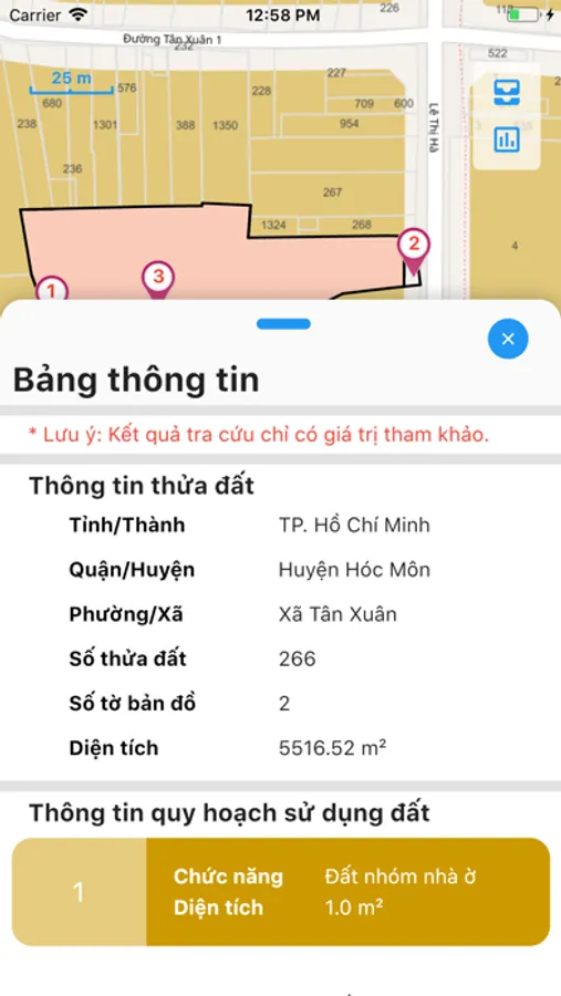 - Giúp cho người tra cứu xem được mảnh đất đang nằm trong các diện quy hoạch nào, diện tích bao nhiêu