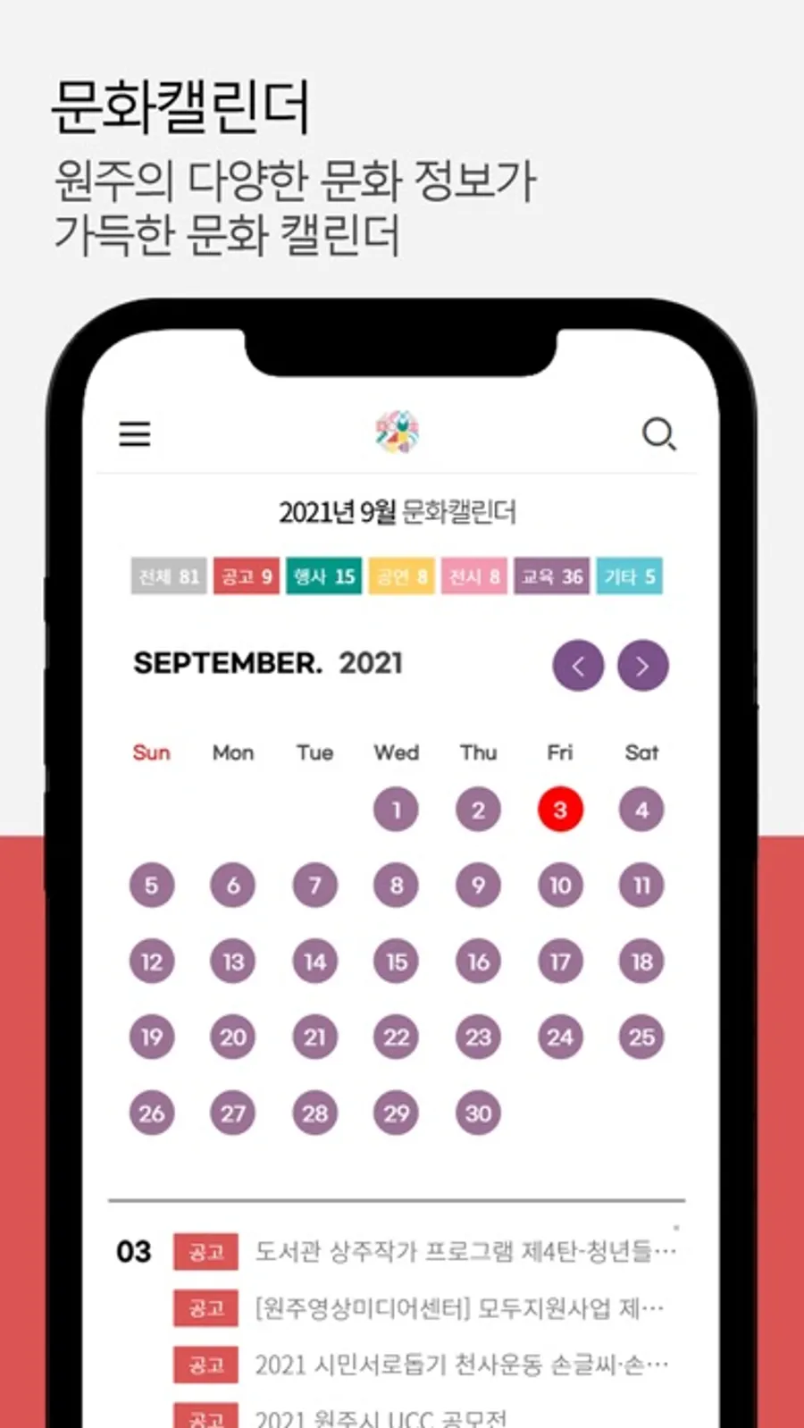 - 원주 파트너는 캘린더에 문화 정보를 공유할 수 있어요!