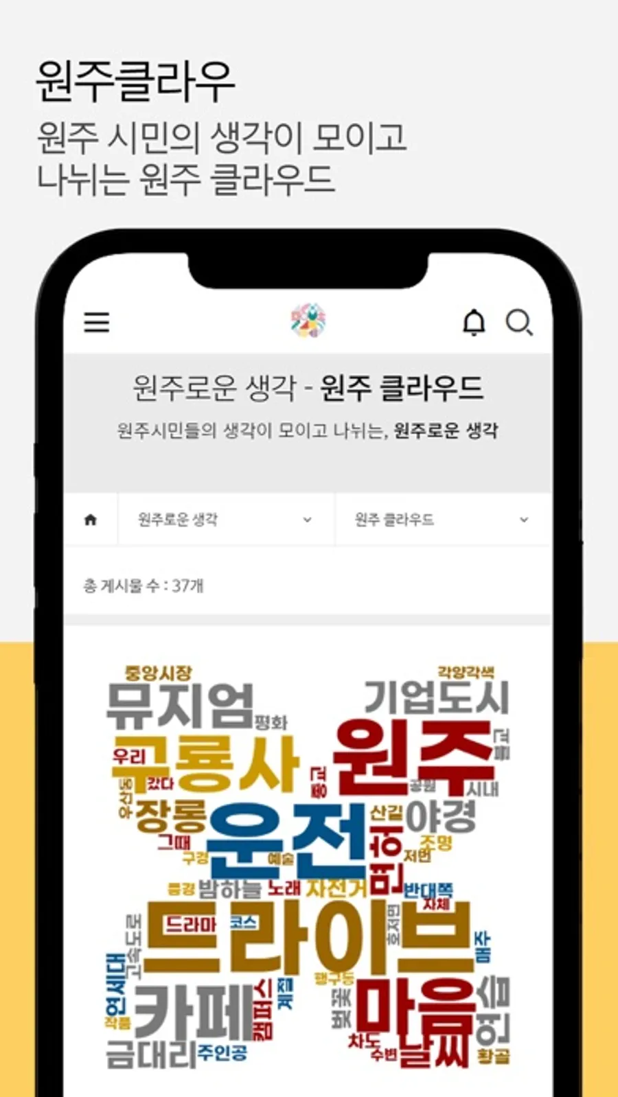 - 매주 '클라우드 게시판'에 올라오는 주제에 대한 시민의 생각이 모이는 '원주 클라우드'