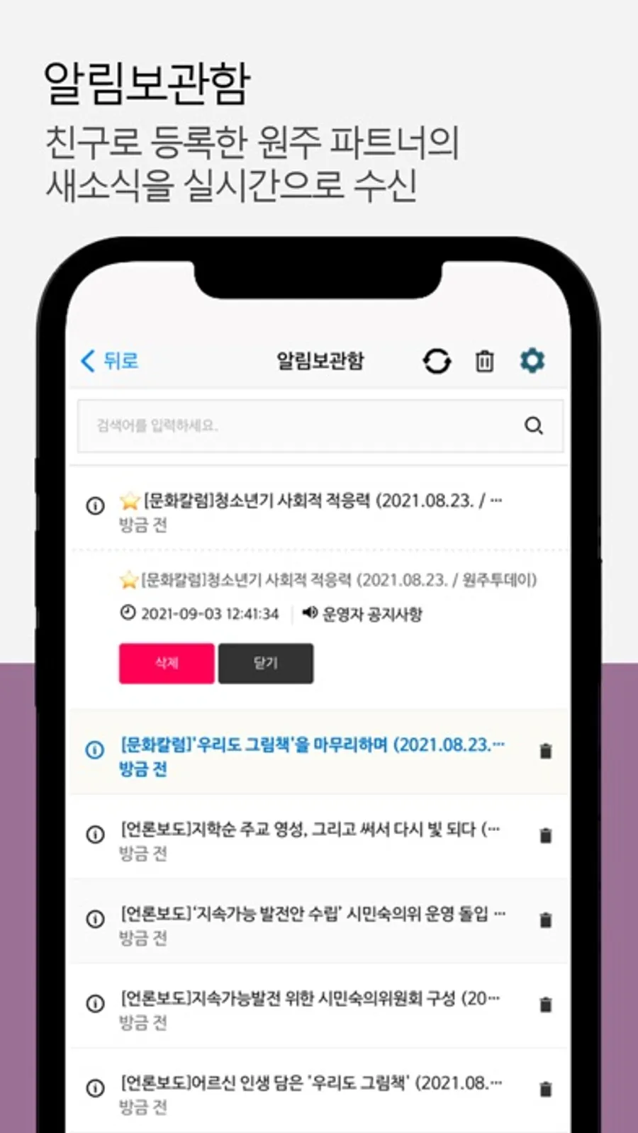 - 기분과 나누고 싶은 즐거운 소식은 '원주 이야기'에서 공유해 주세요!