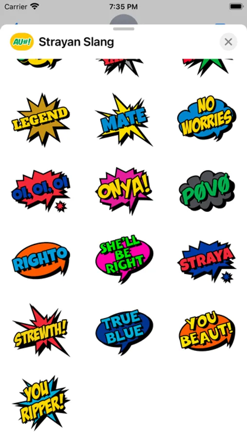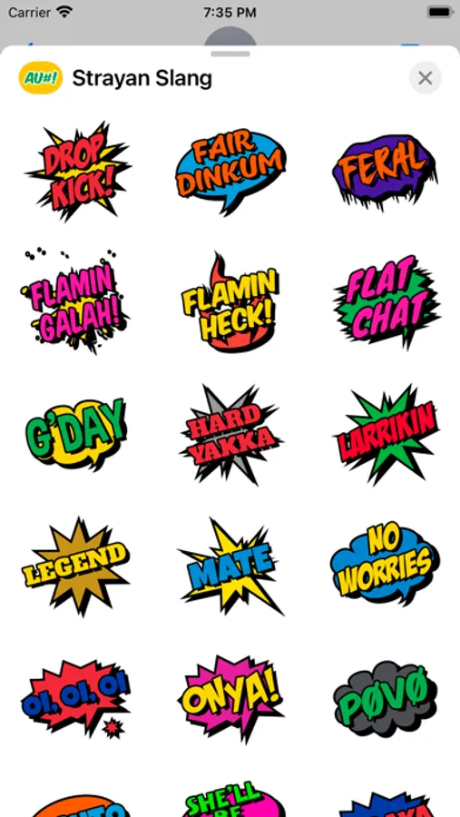 Strayan Slang is a Splendrous Aussie slang iMessage app with loads of bonza Aussie slang stickers that you can text your mates! Let's celebrate Straya! Fair dinkum you can defo say blimey, righto, dag, povo, feral, flat chat, crikey, you beaut, mate, strewth, cheers, onya, no worries and g'day to flamin' galahs, bogans, deros, legends and mates. Download now! View the other Splendrous apps in the App Store or at splendrous.co.