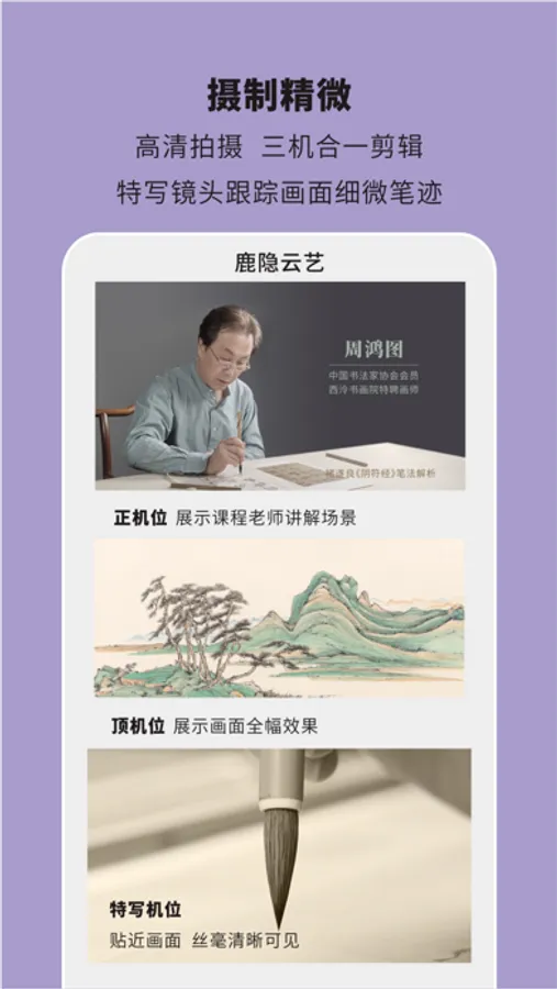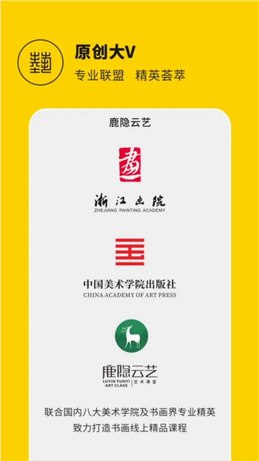 鹿隐云艺书画课堂依托书画艺术领域的代表性艺术家和专业精英,联合打造艺术教育的精品课程。通过线上平台联合推广以及线下互动的形式,形成平台的扩散力、凝聚力和生命力,提升学员的专业技能和专业素养。鹿隐云艺艺术课堂致力成为“专业类艺课教育”的典型网络教材。