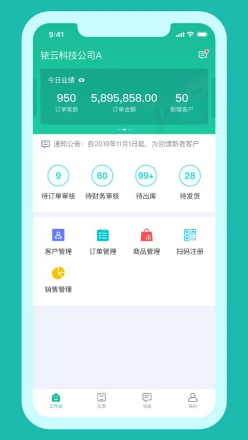 云打印订单、分享订单邀请客户付款、录入新商机、邀请客户网上订货