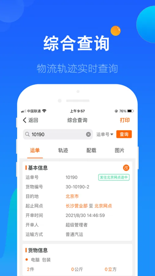 科邦云作为目前物流仓储行业专业的物流企业办公平台,涵盖零担运输、三方物流、仓储配送、同城配送、城乡配送等一站式综合物流解决方案,为中小微物流企业、网络平台型物流企业提供有核心竞争力的解决方案、产品和服务。