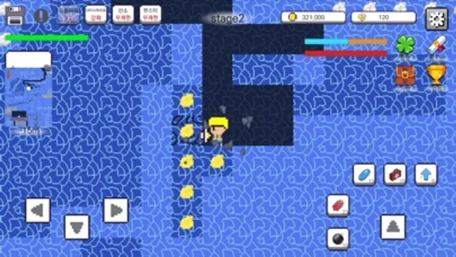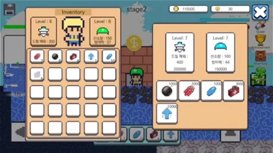 - 드릴로 땅을 뚫고, 돈을 벌어 드릴과 모자를 업그레이드!