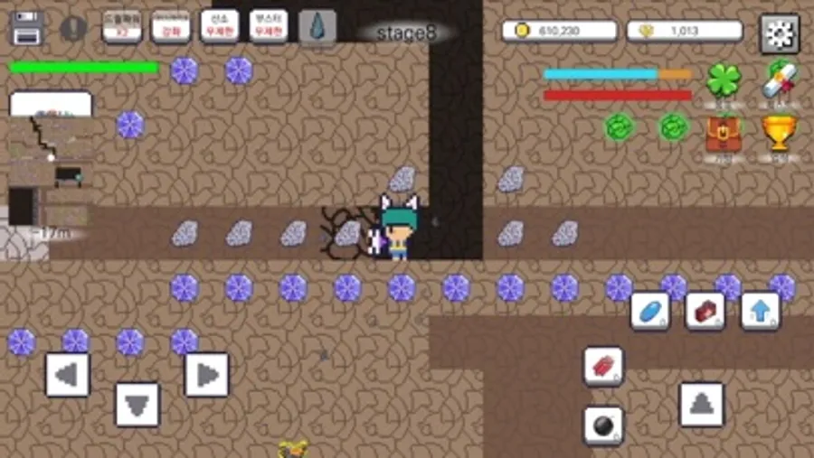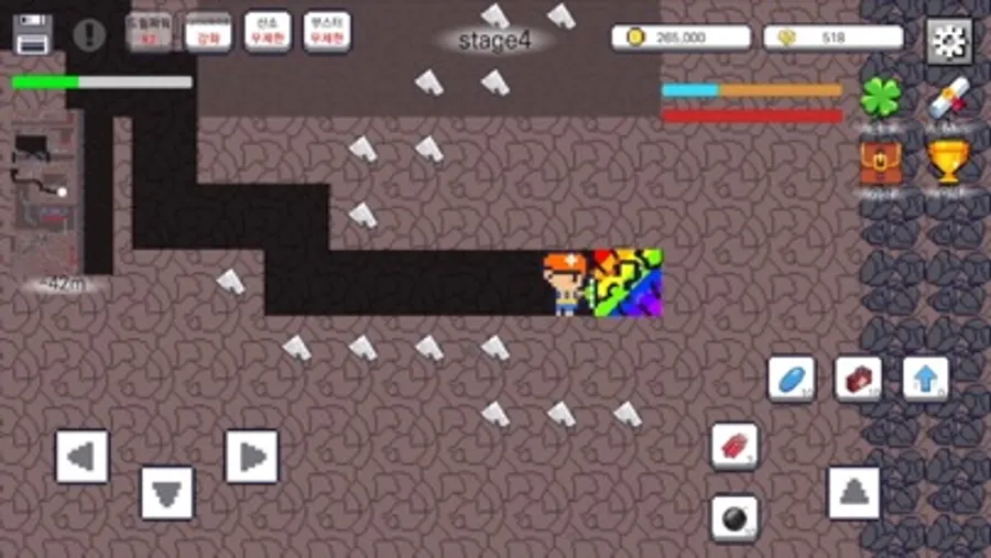 - 무지개블럭 → 깨기만 하면 많은 양의 광물획득! 1000아다만트가 나올 수도?