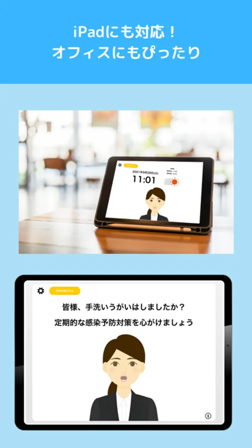・日々役に立つ、挨拶、始業・終業の案内、感染予防対策の呼びかけ、など種類豊富な音声をご用意しています。