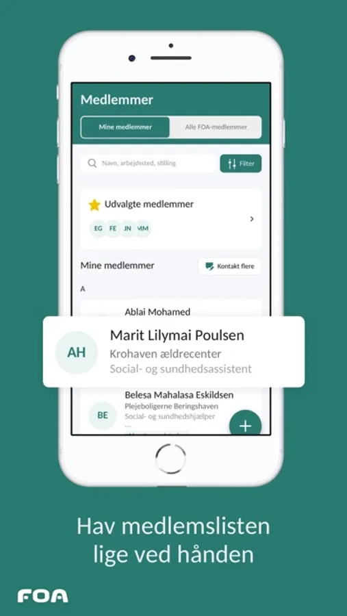 App’en giver dig overblik over alle de medlemmer, du dækker, så I nemt kan komme i kontakt, og den viser dig netværk, hvor du kan finde hjælp, samarbejde og sparring. Du finder også de gode argumenter og hurtige veje til indmeldelse i FOA, når du møder en ny kollega på arbejdspladsen.