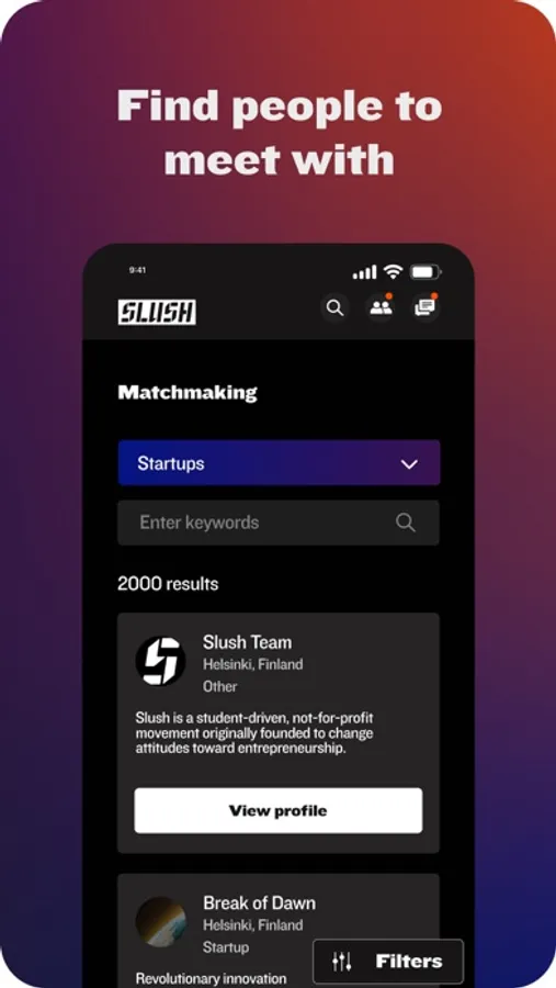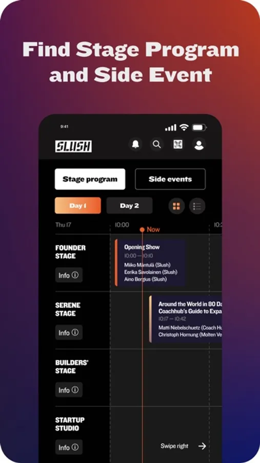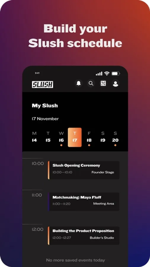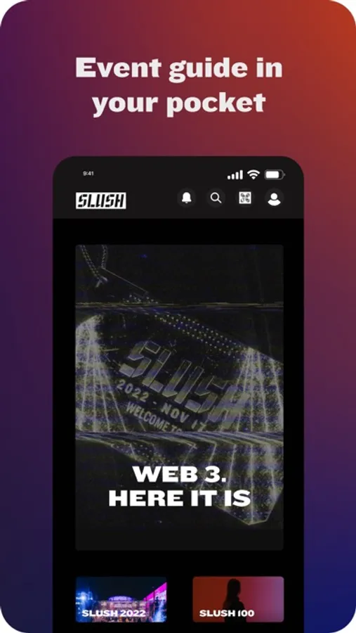 The Slush 2022 app is your gateway into chilly Helsinki in November and your no. 1 navigator when it comes to hacking Slush 2022. Through this app, you can browse our event program, create your own schedule for Slush Week, see the when and where of your accepted Matchmaking Meetings, and register for our 200+ Slush Side Events across the city.