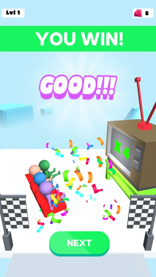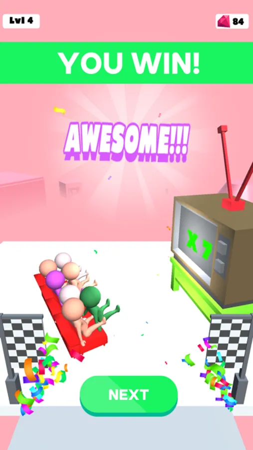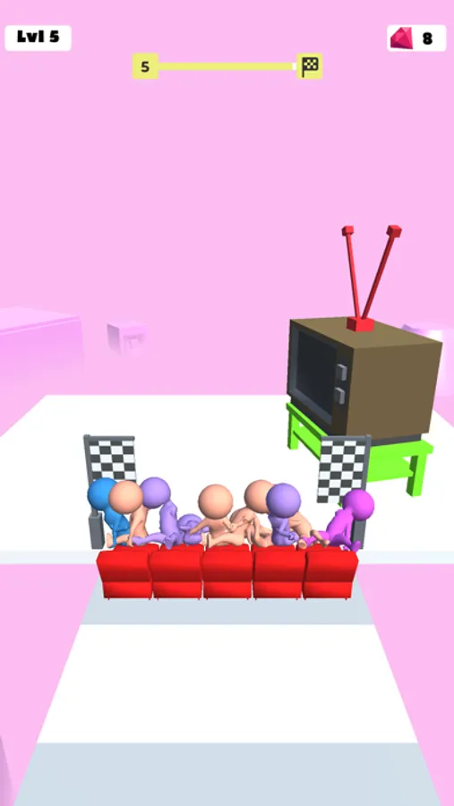 Gather as many men as you can to the seat. It doesn't matter vertically or horizontally. Finally enjoy watching TV.