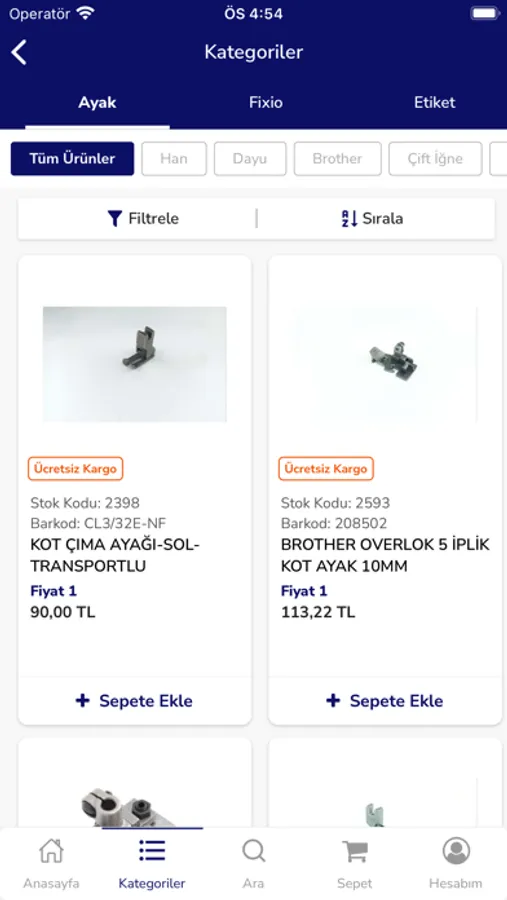 * Ürün kategorilerinde filtreleme yapabilirsiniz.