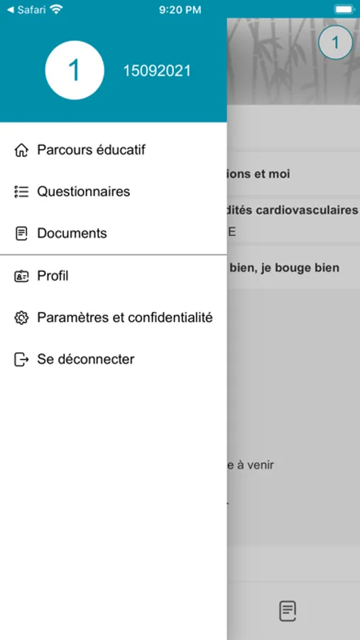 L'information éducative présentée dans l'application est donc fournie par le professionnel de santé qui vous suit, mais ne dispense pas de demander l'avis d'un médecin ou d'un autre professionnel de la santé qualifié pour toute question relative à votre santé.