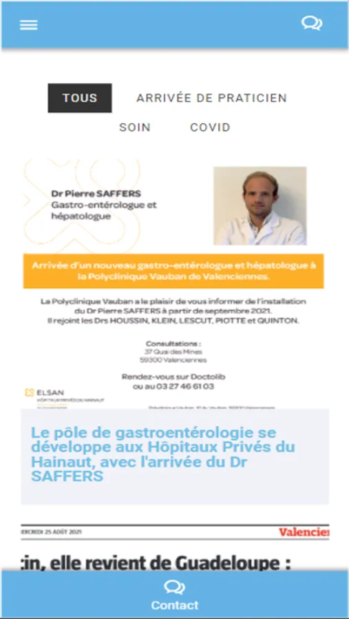 ELSAN HDF est l'application mobile qui vous permet de restez informé des actualités des cliniques de la région (Valenciennes, Saint Saulve, Somain, Saint Quentin, Cambrai, Saint Omer, Dunkerque): Arrivée de praticien, création de service de soins, nouvelles prises en charges médicales ou chirurgicales, ...