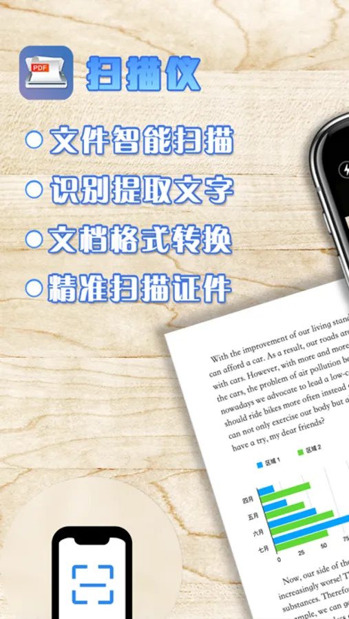 扫描仪是一款集文件扫描、图片文字提取识别、PDF 内容编辑、合并PDF转Word等功能于一体的智能扫描软件。自动扫描,生成高清扫描件,支持云端扫描,支持JPEG、PDF等多格式保存,还能将扫描件一键转换为 Word//TXT等多种格式文档,支持PDF与Word//TXT等文件格式互相转换,也支持图片转换成PDF海可以识别图片中对文字然后生成PDF,Word,TXT等文件,可打印或者分享给他人,通过手机、平板电脑、电脑等多设备同步查看。
