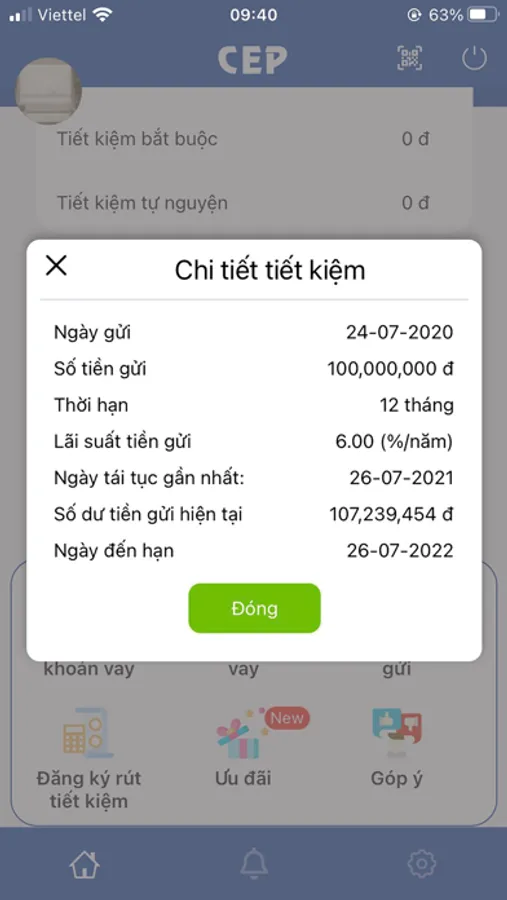 + Tra cứu được các khoản tiết kiệm gửi ở CEP.