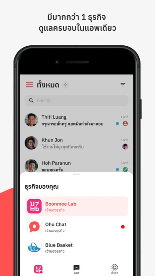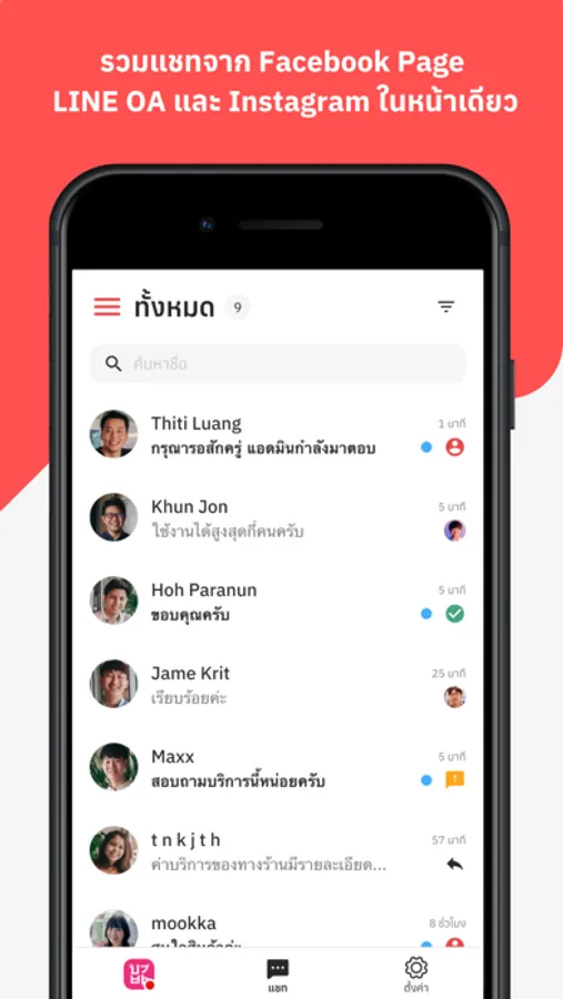 1. แชท: จัดการแชทที่มาจาก Facebook Page, Facebook comment , LINE OA และ Instagram ได้ในที่เดียว และรองรับการทำงานเป็นทีมของแอดมิน