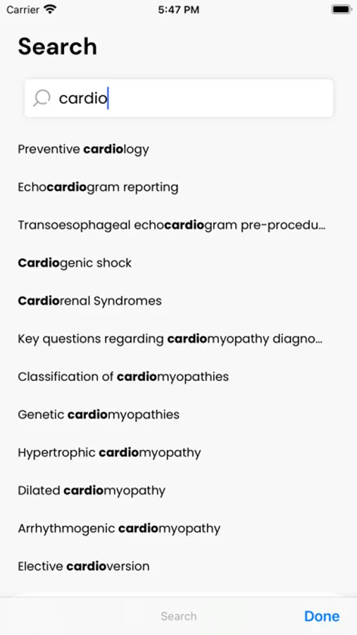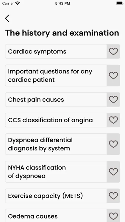 The application is comprised of a series of shortlists that include diagnostic criteria, classification of disease, methods of reporting disease, and heart disease management strategies. The checklists are designed to be brief but to include the most important aspects of care and to avoid an important clinical issue being overlooked. These lists include cardiac investigation and reporting, management of hemodynamic problems, acute coronary syndromes, heart failure, valvular heart disease, myocardial disease, arrhythmias, preventive cardiology, aortic diseases, pericardial disease. These checklists are not the last word and are not intended to be followed slavishly or to replace clinical judgment. These checklists are designed to be a convenient, rapidly accessible, tool to help doctors and other healthcare professionals manage their patients