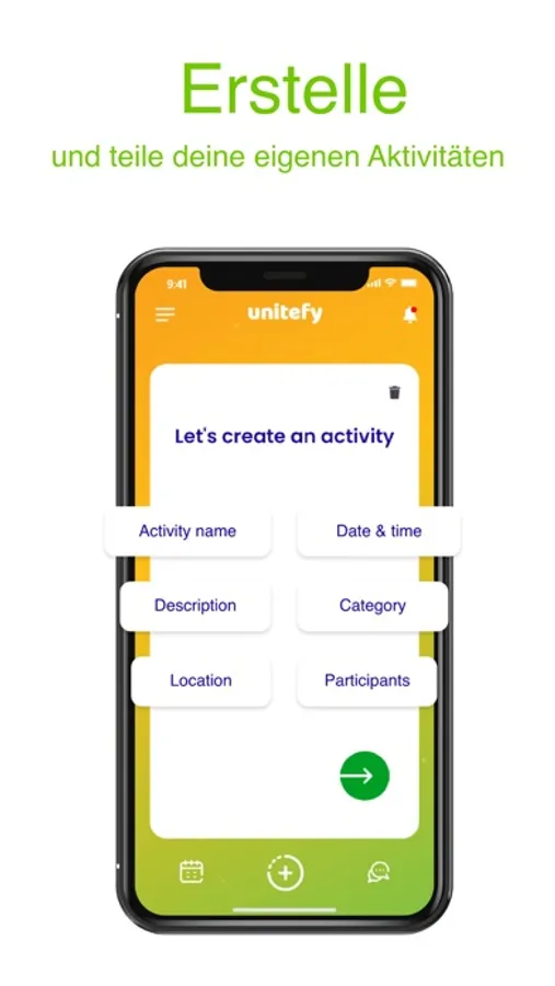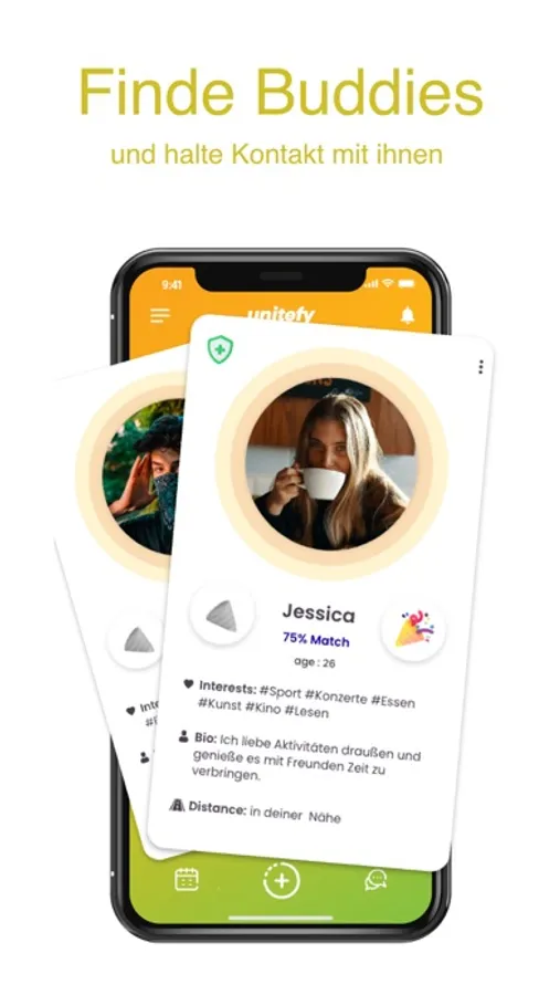 unitefy ist der schnellste Weg, um neue Menschen in deiner Nähe kennenzulernen. Einfach durch aufregende Aktivitäten wischen und teilnehmen. Oder stelle deine eigene Aktivität ein, um spontan tolle Menschen zu finden, die daran teilnehmen können. Nachdem du an einer Aktivität teilgenommen hast, werden dir die anderen Teilnehmerinnen und Teilnehmer dieser Aktivität im Kartenstapel angezeigt. Du kannst dich somit mit den Personen verbinden, die dir besonders sympathisch waren. Keine Sorge, unitefy ist keine Dating App. Dein Profil wird keinen fremden Menschen angezeigt. Du erscheinst lediglich bei Menschen, die du schon von einer Aktivität kennst.