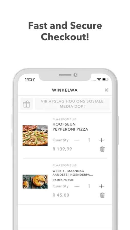 Vind jou gunsteling aflewerings soos Pizza's, Hamburgers, Vetkoeke, Vis & Chips en ons immer gewilde Vooraf Gekookte Disse soos Kerrie Afval, Bobotie, Waterblommetjie Bredie en meer!