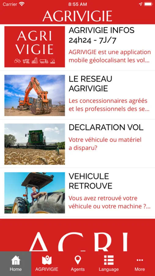 Agrivigie est une application mobile innovante conçue pour répondre aux besoins de sécurité des propriétaires de machines agricoles et de construction. Elle combine la puissance de la géolocalisation en temps réel avec une communauté de veille proactive, offrant ainsi une solution complète pour prévenir les vols et faciliter la récupération des équipements (Informations disponibles en 26 langues).